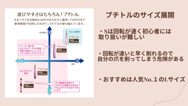 ネイルマシンプチトルのサイズや機能の主な違い