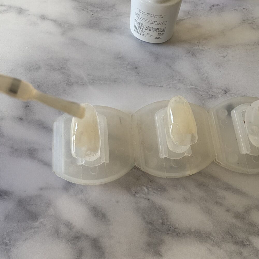 プレパレーションとベースジェル塗布→硬化後から説明します。