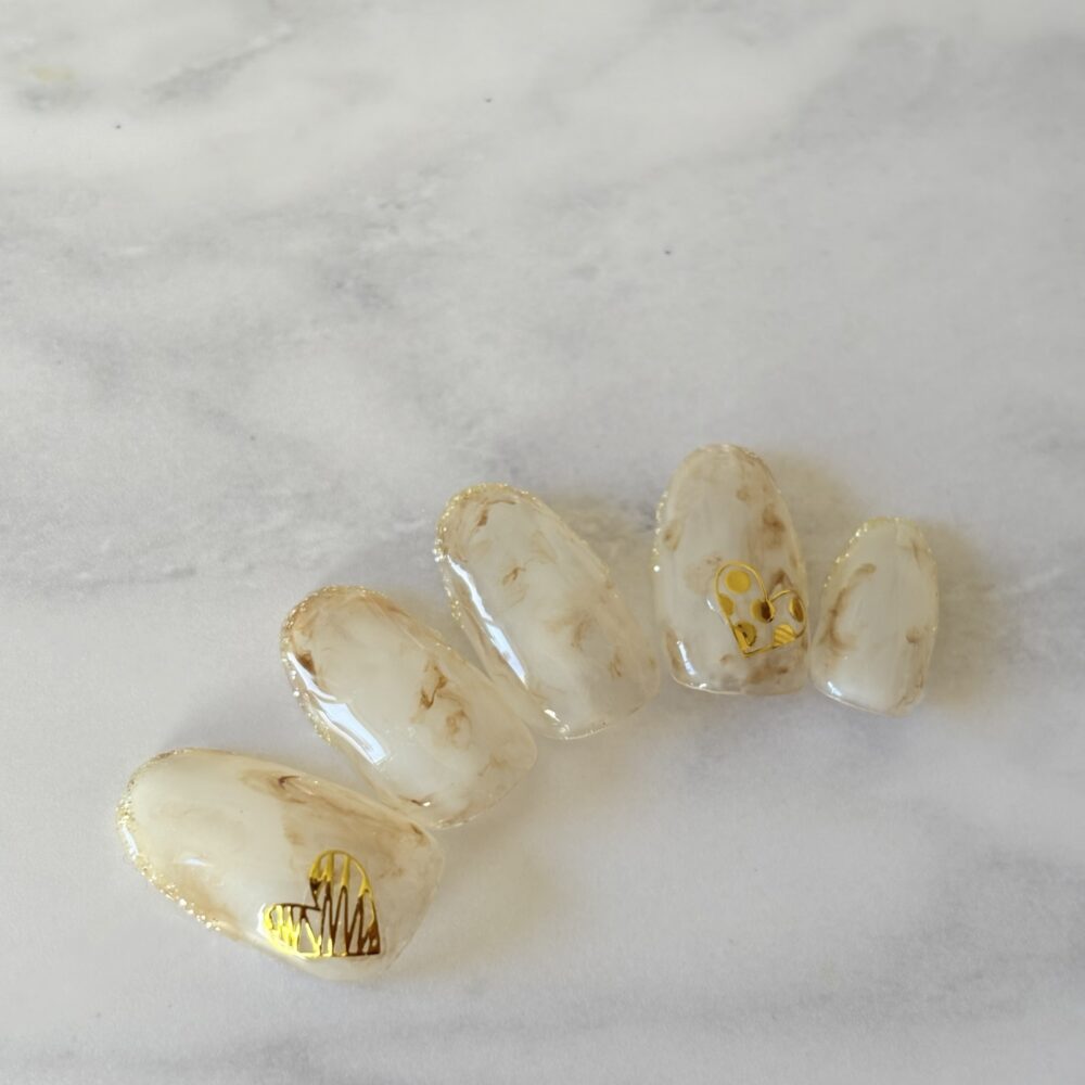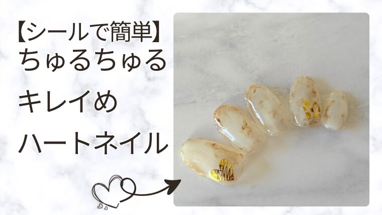 【大理石風】会社でもOKなきれいめハートバレンタインセルフネイルのやり方を解説します。